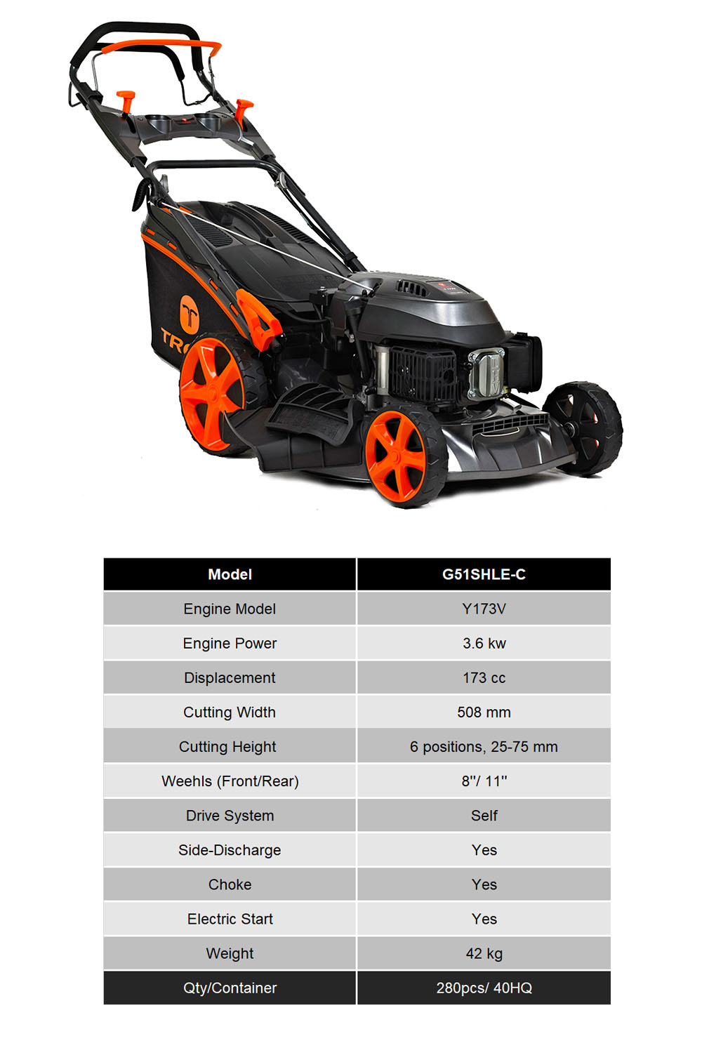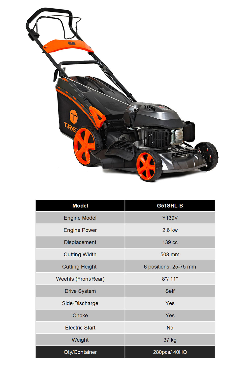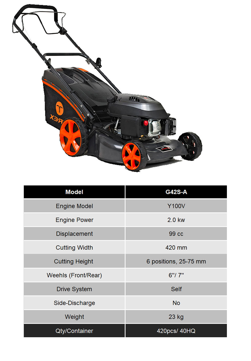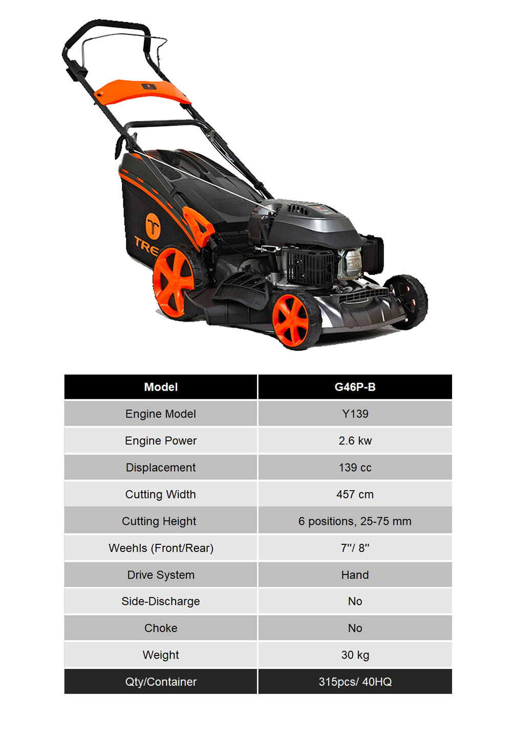 TREX has its own research and development group. The Trex engines have 3 models with different displacement (99cc, 139cc, 173cc). They can satisfy your different power requirement. At the same time TREX engine all use Overhead Valve Technology, which means geater power and lower consumption. The TREX lawn mower with its own engine is popular designed, easy to start, simple to operate with dependable power and has a long lifetime.